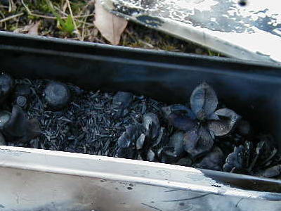 あら!不思議!どんぐりや松ぼっくりの炭ができてるじゃあないですか!
